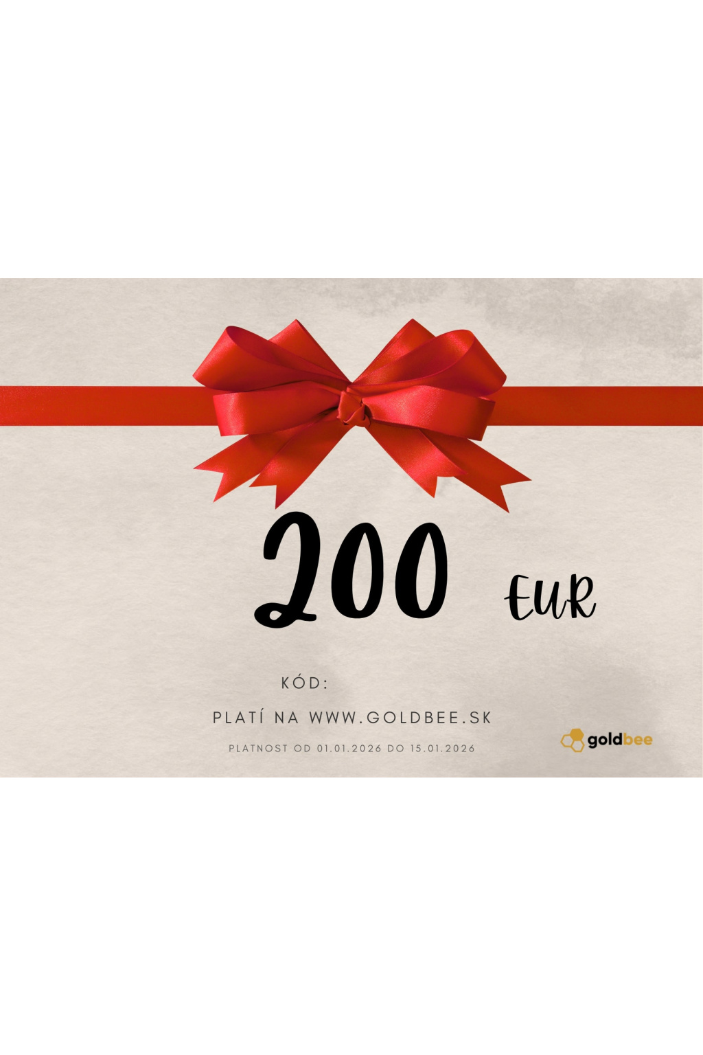 Darčekový Poukaz GoldBee 200 EUR platnosť od 1.1.2026 do 15.1.2026