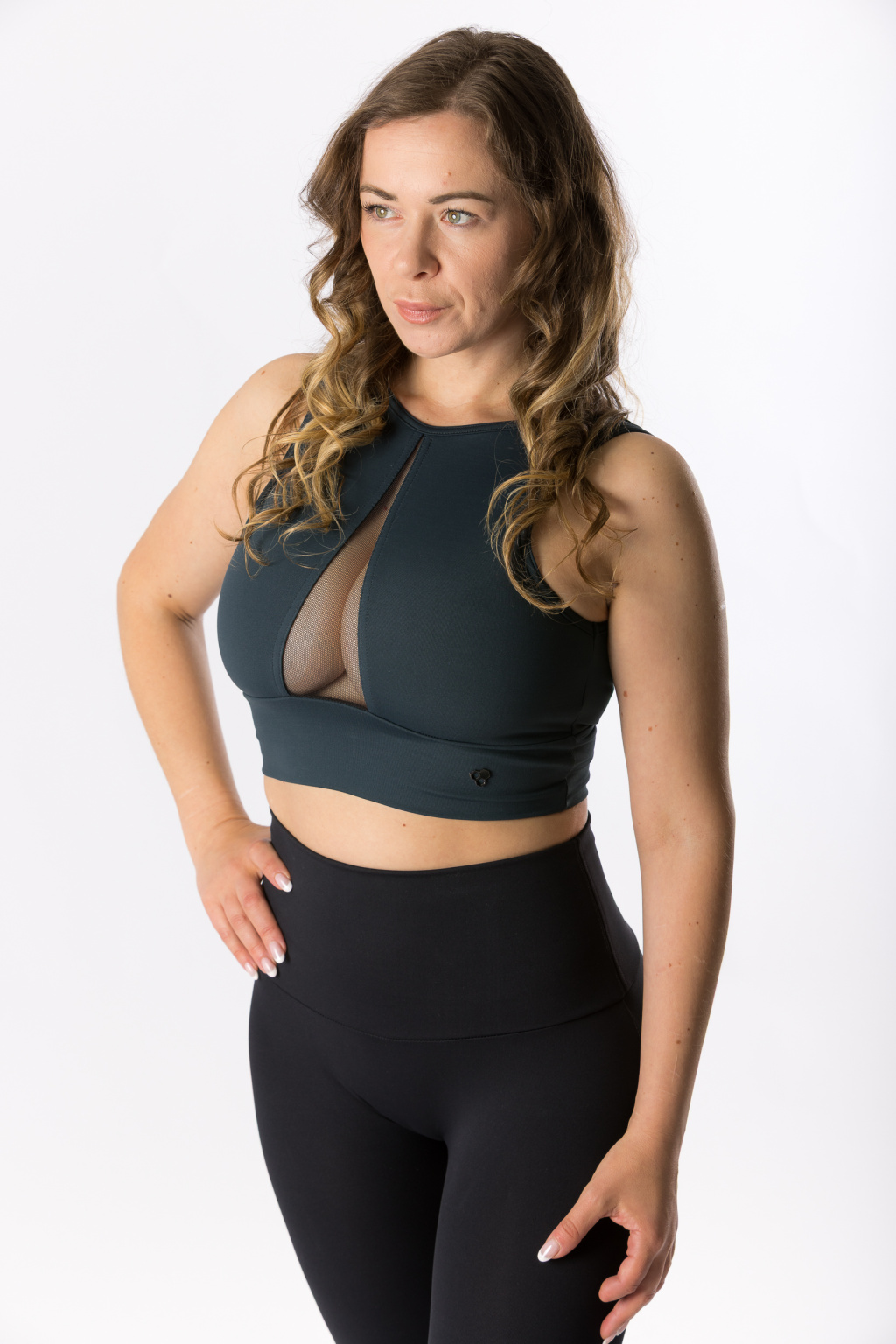 Štýlový krátky top s jemným sieťovaným detailom v oblasti hrudníka, ktorý dodá outfitu šmrnc a eleganciu.Materiál: 90 % polyamid, 10 % lycra - pružný, pohodlný a odolný.